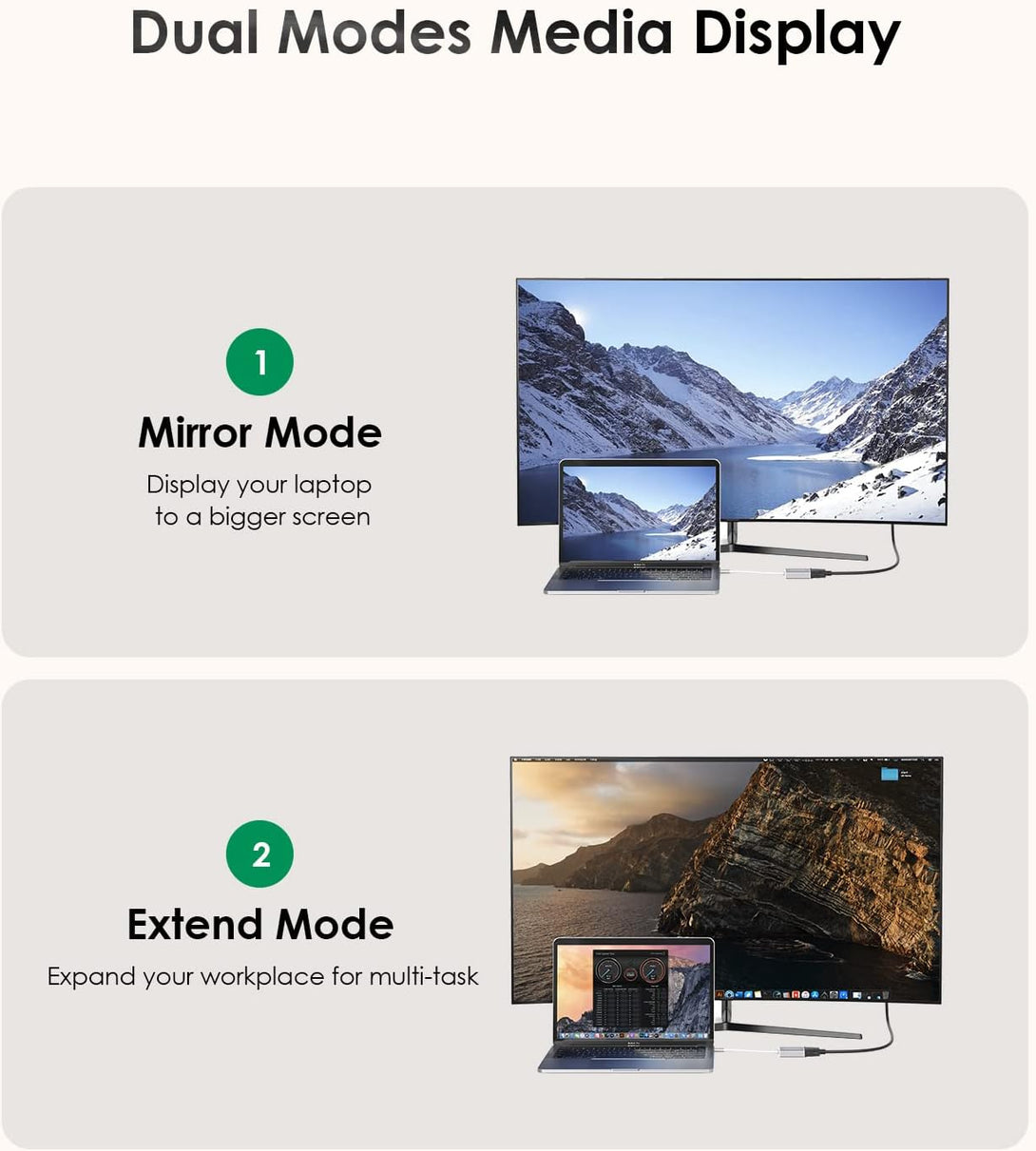 Universal Compatibility - Compatible with MacBook Pro (13"/14"/15"/16", 2016-2025, including M1/M2/M3/M4/M5 series), MacBook Air (2018-2025), iMac & iMac Pro, MacBook 12", Surface Pro/Book/Go (with USB-C port), Chromebook, and other full-function Type-C laptops, tablets, and smartphones.