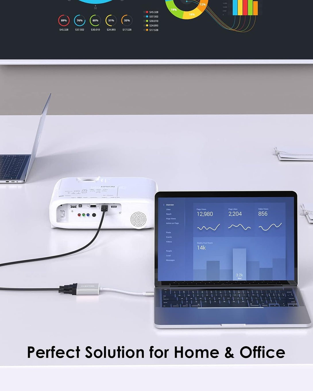 Strong Connection Holes: The fine sandblasted aluminum alloy shell can effectively protect the build-in chip. The two screw holes next to the VGA connector make the connection more stable and prevent the connector from falling off