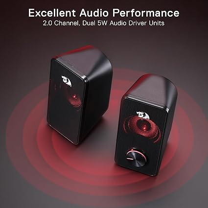 Redragon GS500 Stentor PC Gaming Speaker, 2.0 Channel Stereo Desktop Computer Speaker with Red Backlight, Quality Bass and Crystal Clear Sound, USB Powered with a 3.5mm Connector