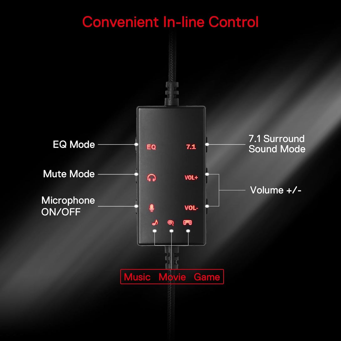 Immersive 7.1 Surround Sound: Experience a truly immersive gaming experience with the Redragon gaming headset's high-precision 40mm drivers that bring every gunshot, footstep, and explosion to life. Convenient In-line Control: Switch between...