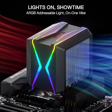 Superior Cooling Performance HL240 houses dual-tower fins and six heatpipes which transfer airflow efficiently through the push-fin heatsinks to provide mighty cooling capacity. Powerful 4-Pole A-RGB Fan Geared with 120mm RGB fans...