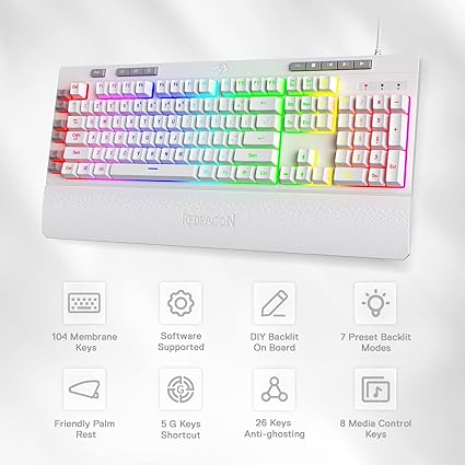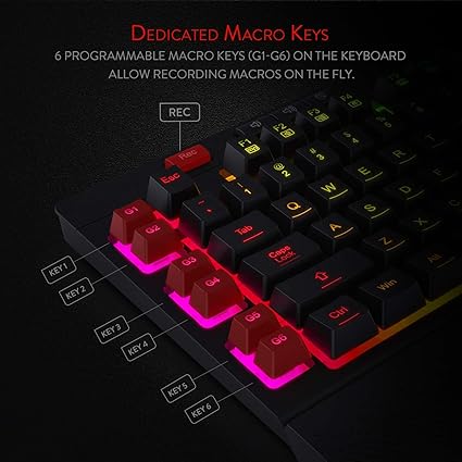 Redragon K512 Shiva RGB Backlit Membrane Gaming Keyboard with Multimedia Keys, Linear Mechanical-Feel Switch, 6 Extra On-Board Macro Keys, Dedicated Media Control, Detachable Wrist Rest