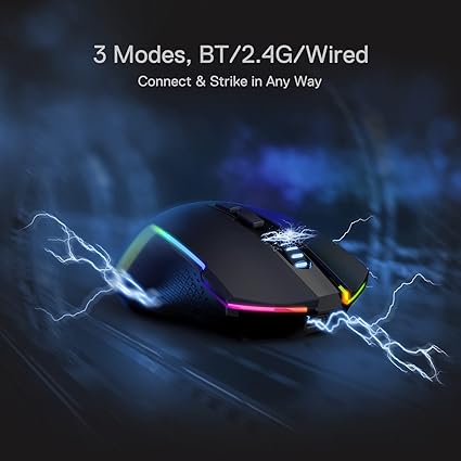 3 Modes Connect Tech: Cables truly will affect your detailed battle reaction, M693(the first Redragon 3-mode wireless gaming mouse) with Bluetooth and 2.4Ghz nano receiver offers you the purest mouse moving experience...